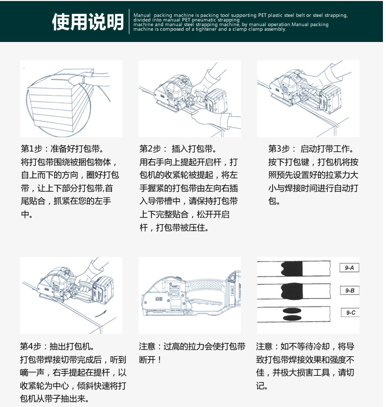 2、P329主要適合19mm以內(nèi)PP,PET打包帶捆扎使用。