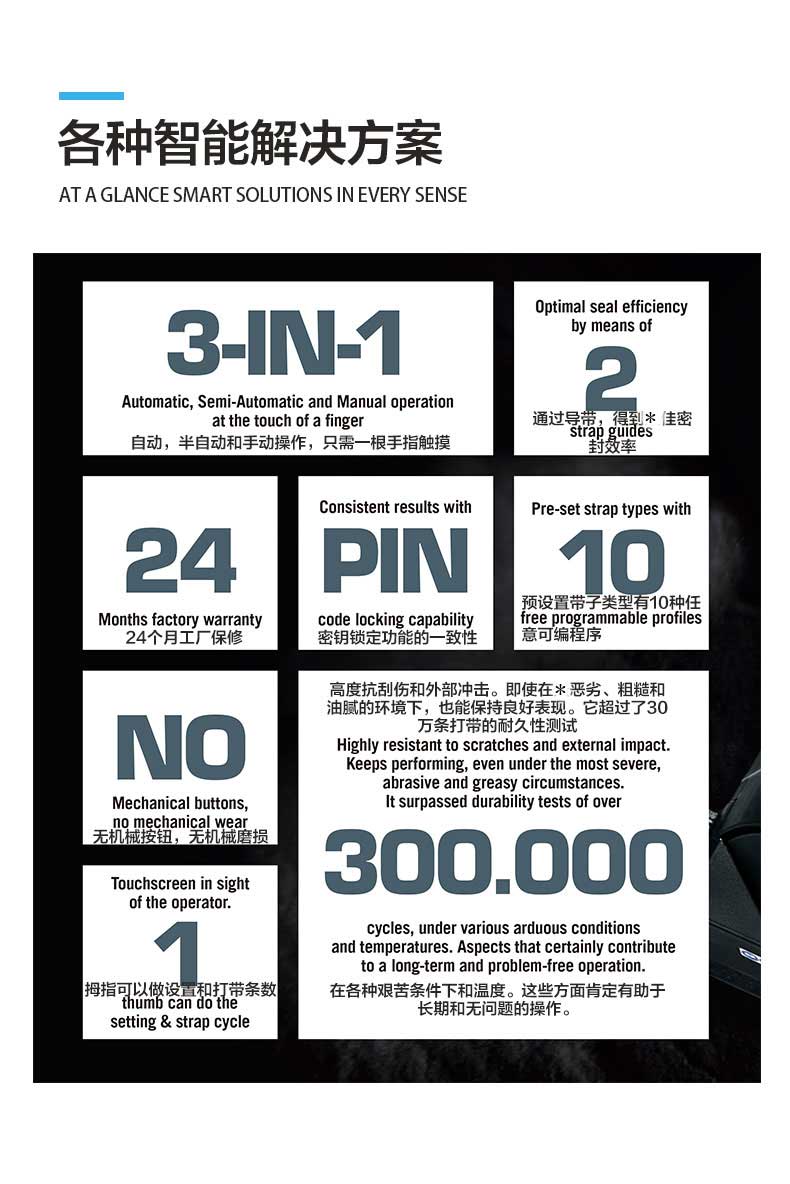 P328S手提電動打包機PET塑鋼帶全自動捆包特質(zhì):聚酯(PET)和聚丙烯(PP)平原和壓花捆包尺寸:寬度10 0 - 16 0毫米 3 8 - 5 8厚度0 40訂購熱線:021-5488-4151