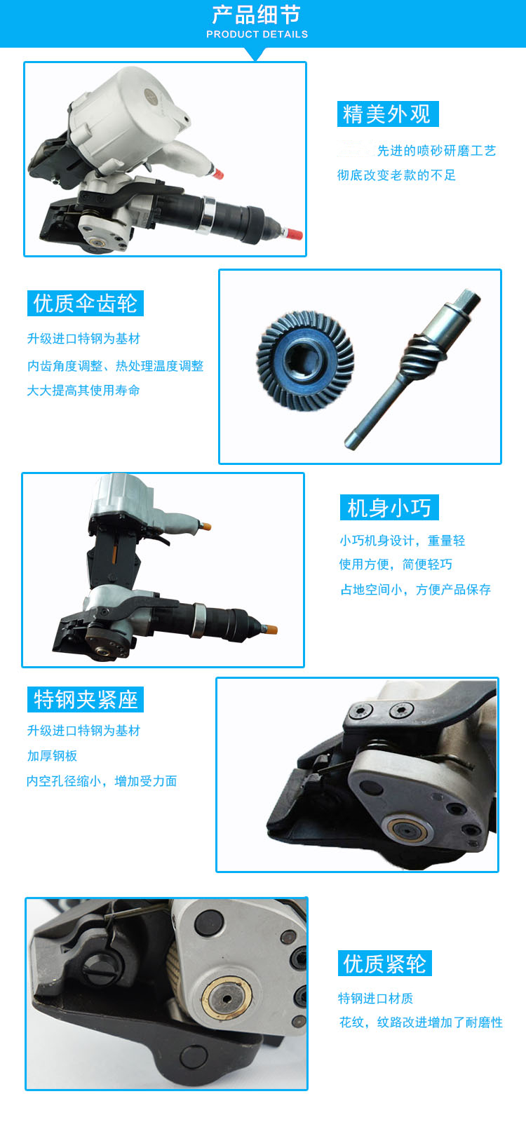 KZL-32氣動鋼帶拉緊機19、25、32mm鋼帶可以通用,KZS-32鎖扣機可以打19、25、32mm鋼帶任選其一。