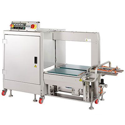 Mercury Transit TP-702YAM是一種沖洗式全自動(dòng)側(cè)封捆扎機(jī)。TP-702YAM采用不銹鋼柜(SUS 304)和防銹或耐腐蝕部件,為海產(chǎn)品、肉類和家禽訂購(gòu)熱線:021-5488-4151