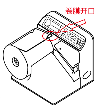 3)用手拉著卷膜進(jìn)氣孔完成進(jìn)入氣管頭后,直接穿入進(jìn)膜槽,然后,一手按著操作面板上黃色的“IN/OUT”(進(jìn)退膜)按鈕,另一手同時(shí)配合著將卷膜從槽內(nèi)拉出。