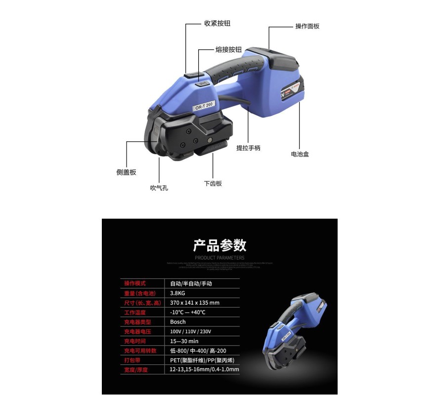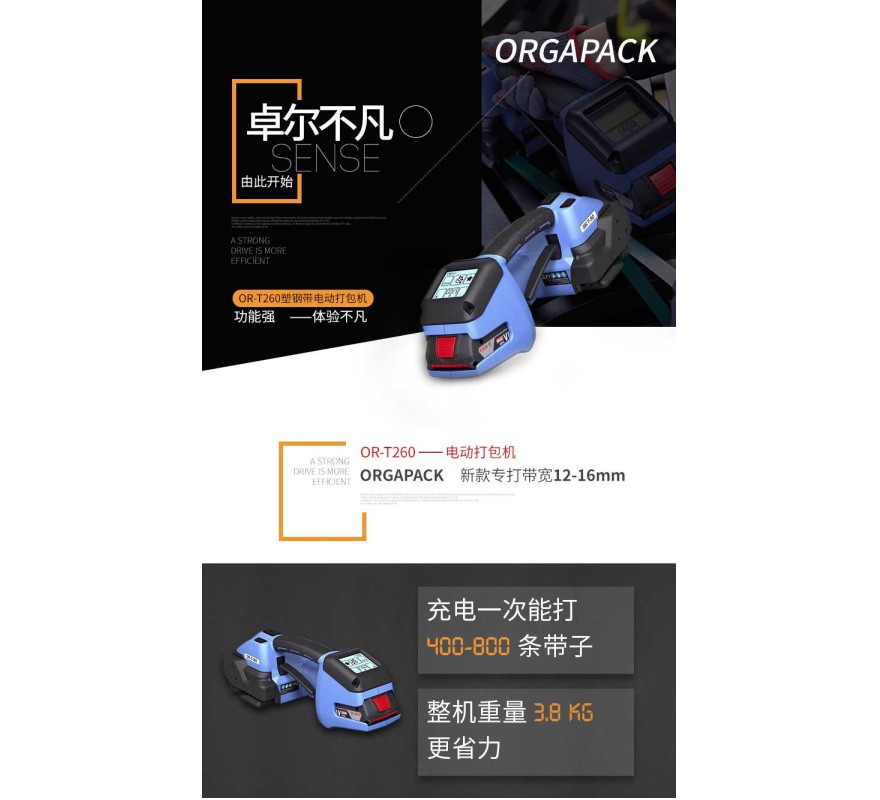 ORGAPACK紅磚打包機,標磚打包機 ORT260一鍵式捆扎專打帶寬12-16mm 電動打包機OR-T260