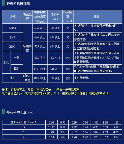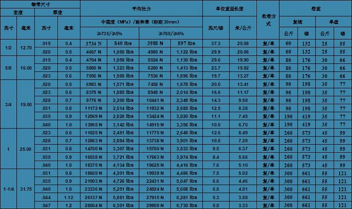 中強(qiáng)度鋼帶規(guī)格/參數(shù)